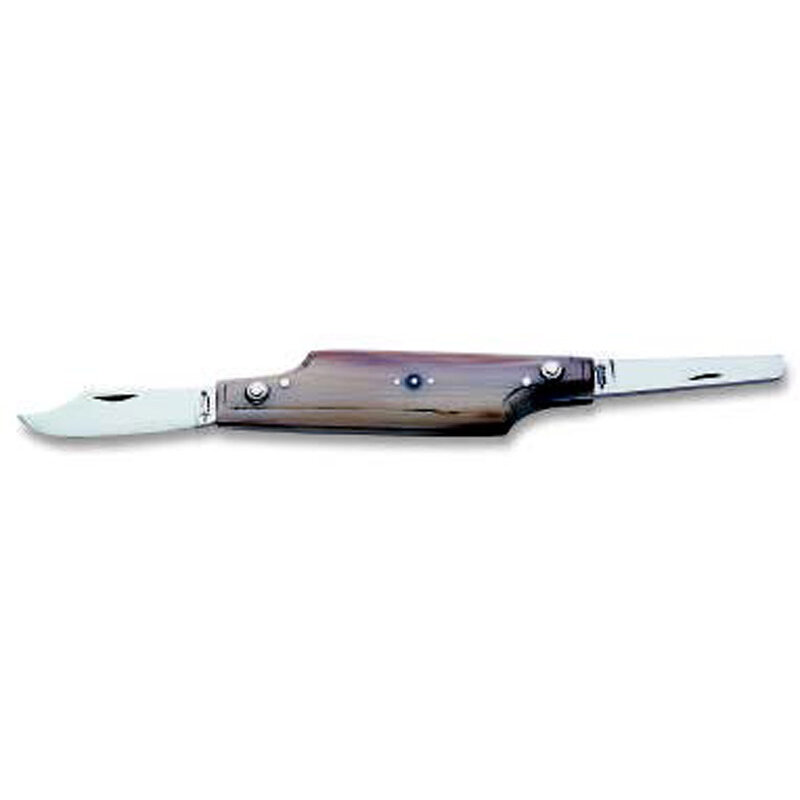 Berti palmerino knife with ox horn handle, originally used to sharpen quills andscrape ink off parchment. later tosharpen pencils., total length: 7.1 inch, blade length: 1.8 inch. MPN: 26.