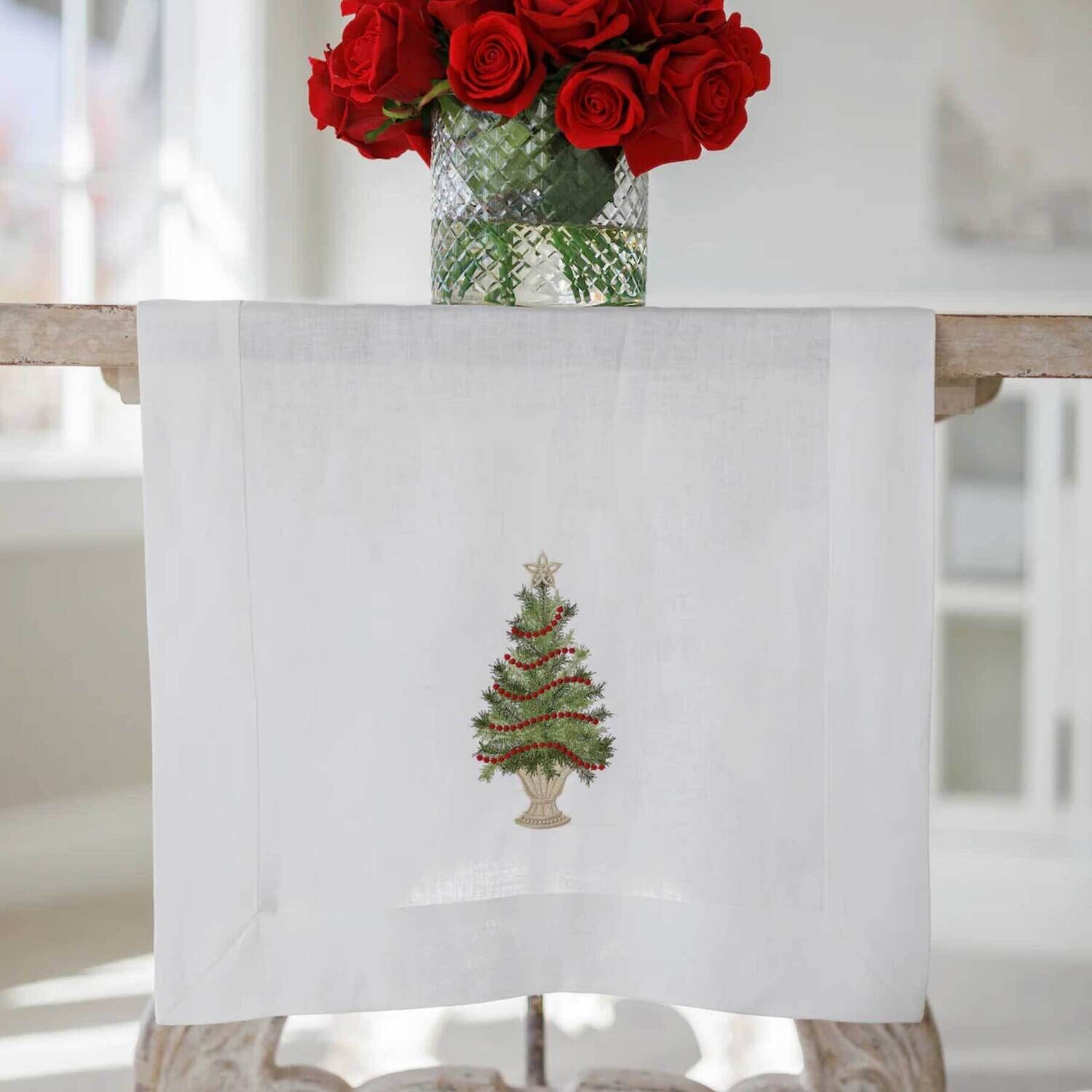Crown Linen Designs Runner Tree with Trim White Red Green 22" x 108" R162108