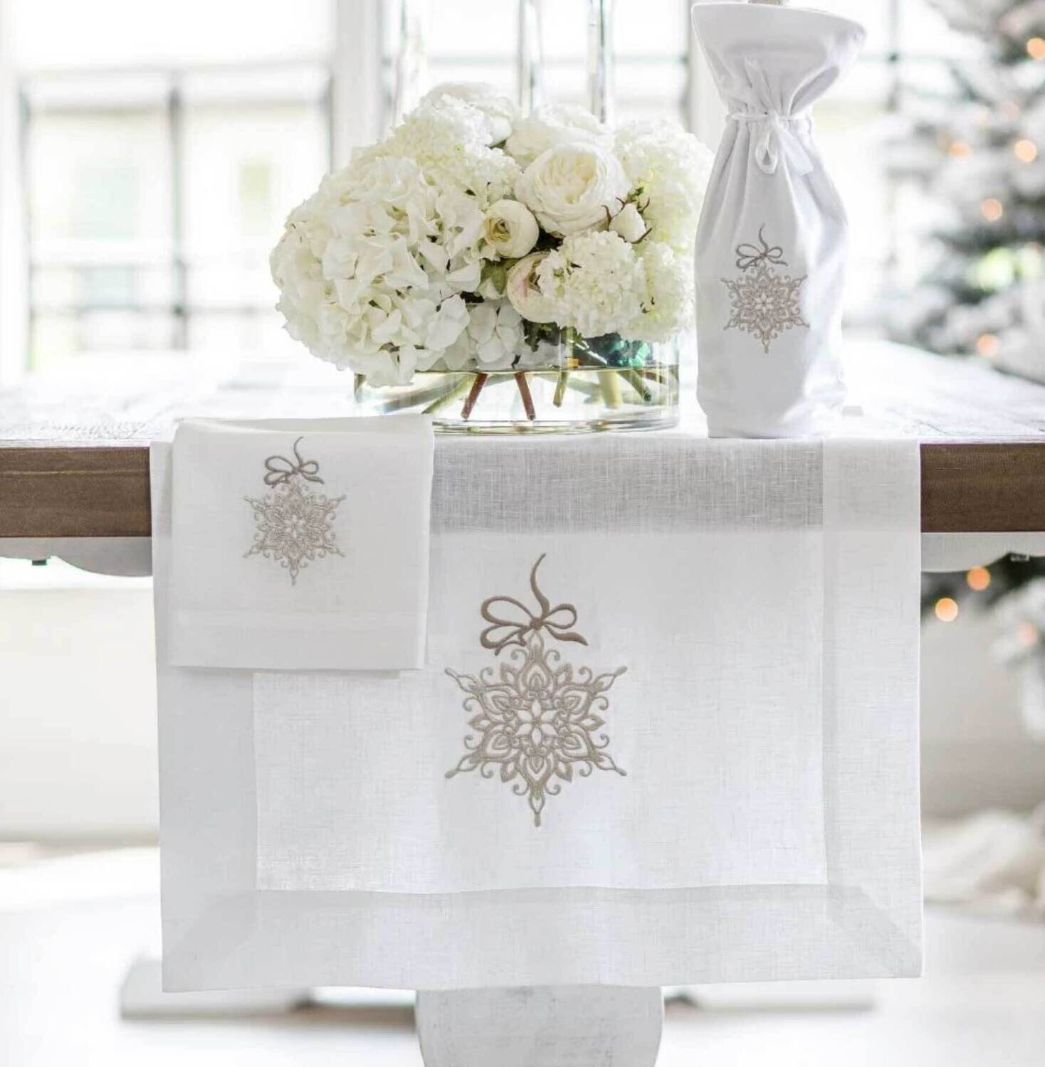 Crown Linen Designs Runner Snowflake White Platinum 22" x 108" R203108