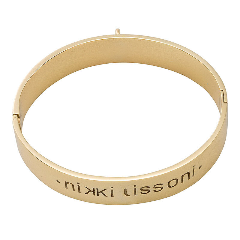 Nikki Lissoni Bangle of 14mm with one loop to attach a charm Gold-plated 21cm 8.2 inch. Series: New. Approximate Weight: 33.6 grams. Number of stones: 0. EAN: 8719075301906. Manufacturer part number: B1120G21.