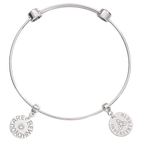 Nikki Lissoni Charm Bangle Silver-Plated with Two Fixed Charms Inner Strength Be Who You Are 19cm 7.4 inch B1051S19
