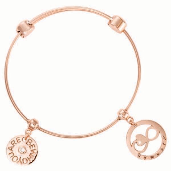 Nikki Lissoni Charm Bangle with Two Fixed Charms Be Who You Are Honesty Rose Gold-Plated 19cm 7.4 inch B1102RG19